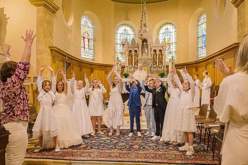 Faites-vous des photos de groupe ? Oui, la traditionnelle photo des 10 communiants ensemble est un incontournable. C’est le souvenir précieux de cette “promo” 2025 !