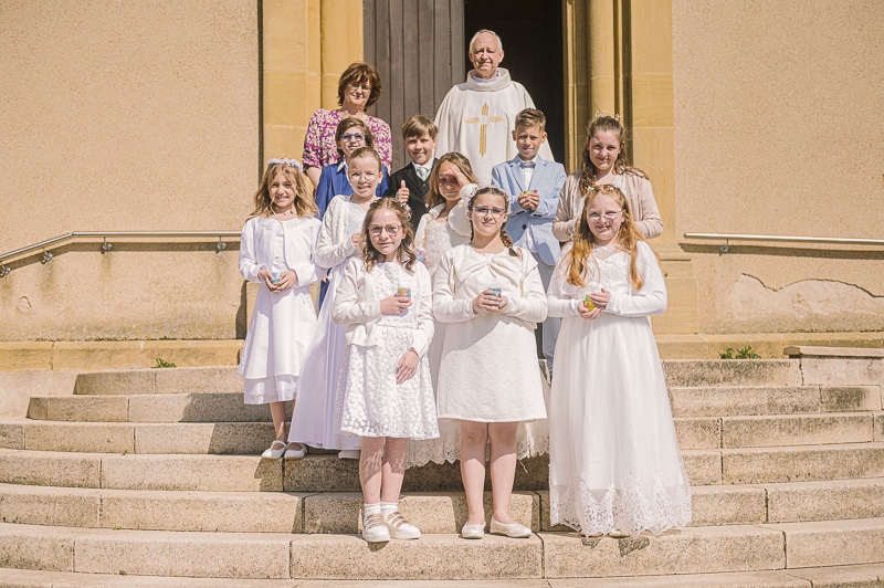 Que l’on vienne de Retonfey même ou des villages alentours, c’est l’occasion de se rassembler, de sortir les beaux habits (et de croiser les doigts pour que personne ne tache son aube avant la photo !). En tant que photographes officiels des communions de Retonfey, nous avons la chance immense d’être aux premières loges pour capturer ces sourires, ces regards fiers et, avouons-le, ces petits moments de stress rigolos avant l’entrée en église.